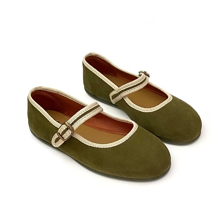 Ballerina shoe in suede with an anti-slip rubber outsole.